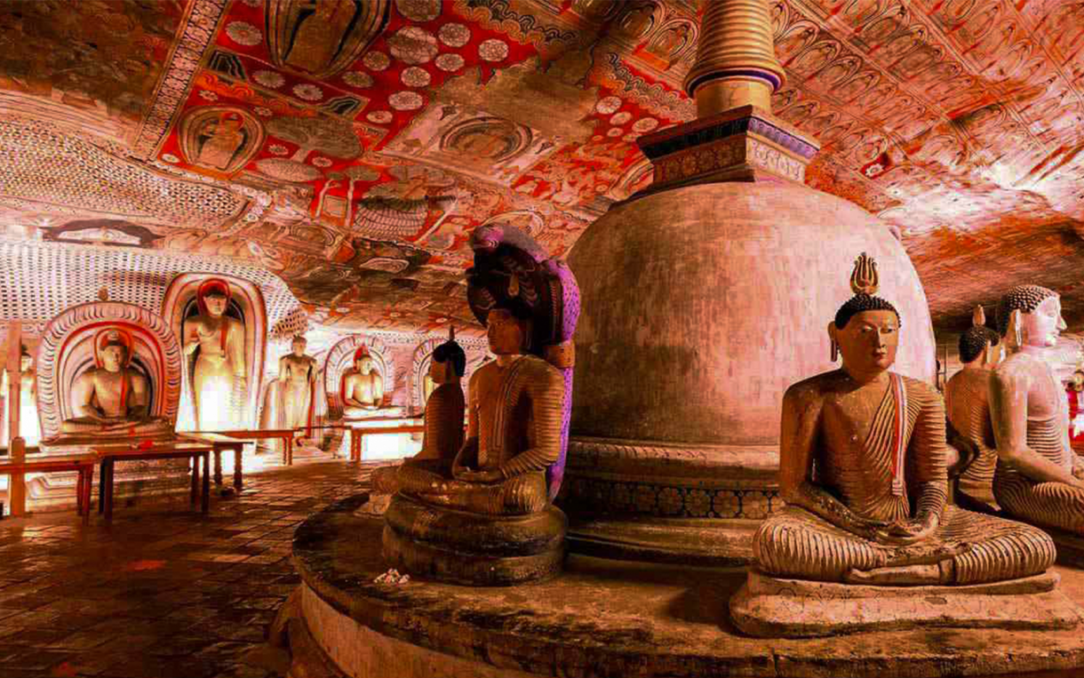 The Dambulla temple has five caves and 157 statues of the Lord Buddha, many paintings on the ceilings and walls that emphasis the artistic talent of ancient days.